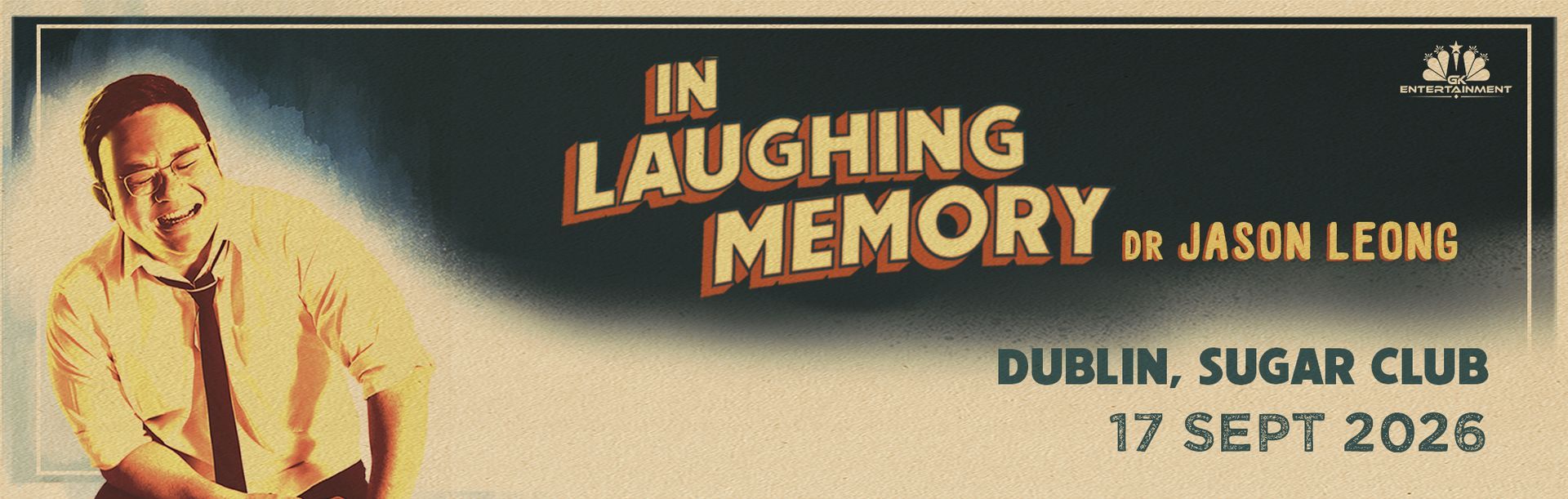 Dr Jason Leong brings his hit stand-up show In Laughing Memory to Sugar Club, Dublin on 17 September 2026. A sharp, honest, laugh-out-loud comedy night.