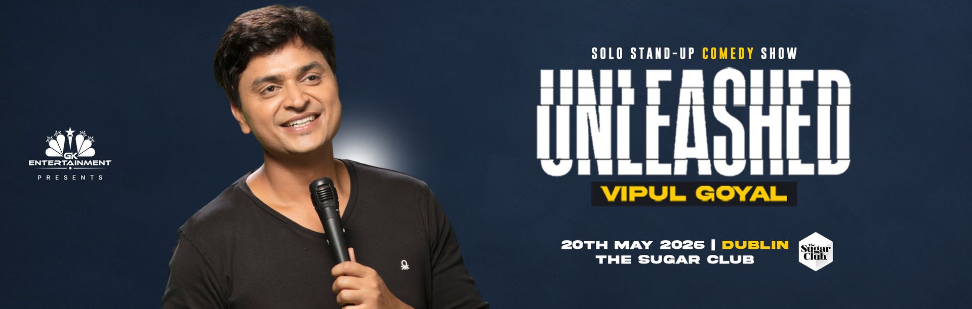 🎤 Don’t miss Vipul Goyal live in Dublin on **May 12, 2025**, at The sugar Club! 🎭 Grab your tickets now on the Laughter Lounge or GK Entertainment websites. 🎟️😂